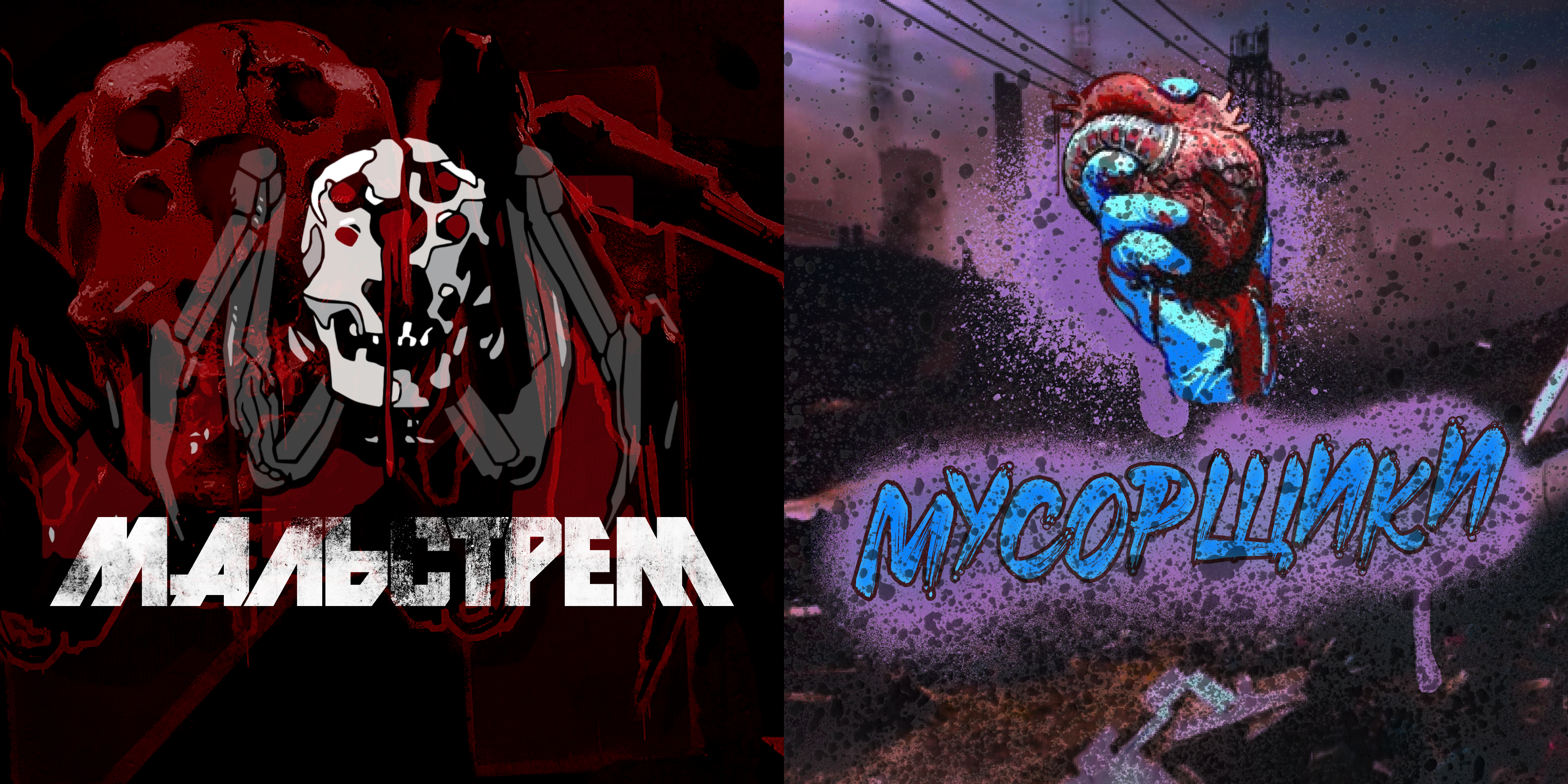 Пара моментов: не нашел текстовое лого Мусорщиков, но думаю оно выглядело бы примерно так - простая, грубоватая надпись краской с ближайшей свалки.