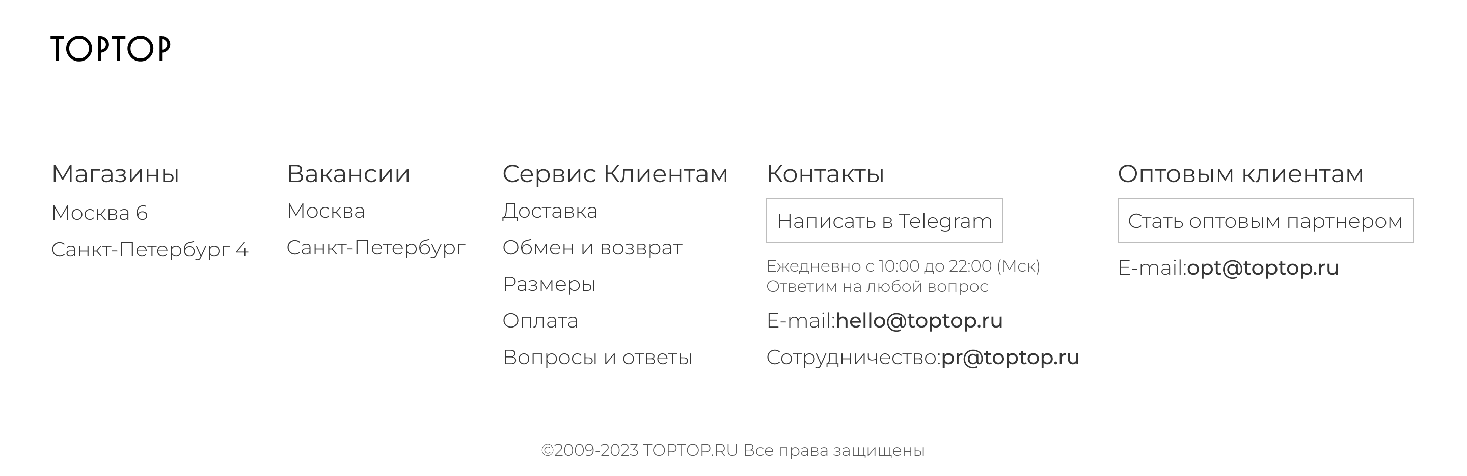 Landing page for online store TOPTOP